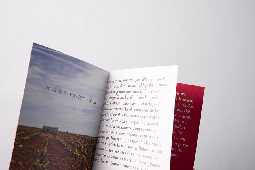 “Reading texts in Botera type, we do not only use a font, but we give to the user an original heritage of a region consistent with its root. Botera is like wine, we can use it every day or keep it for special moments. It is the safeguard of the characteristics of these wines, able to show us the knowledge of tradition and new contributions” notes Montoya.