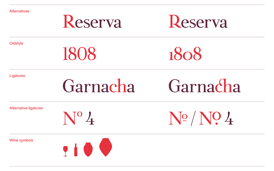 “It is well known that our country has not been a great producer of typographies, as many other countries that have been important typographical creators, so maybe this is one of the reasons for what we always use the types established in the collective memory of the society, although when we have recovered some spanish typographies as the Ibarra Real. In this point is necessary to think that, relating to the wine world, the main discipline of graphical design would be packaging, but this project wants to go deeply into the typographical questions, into the concept of wine and to speak in the same language, as well as in the shades that are capable of transmitting our characters and visual codes” he adds.