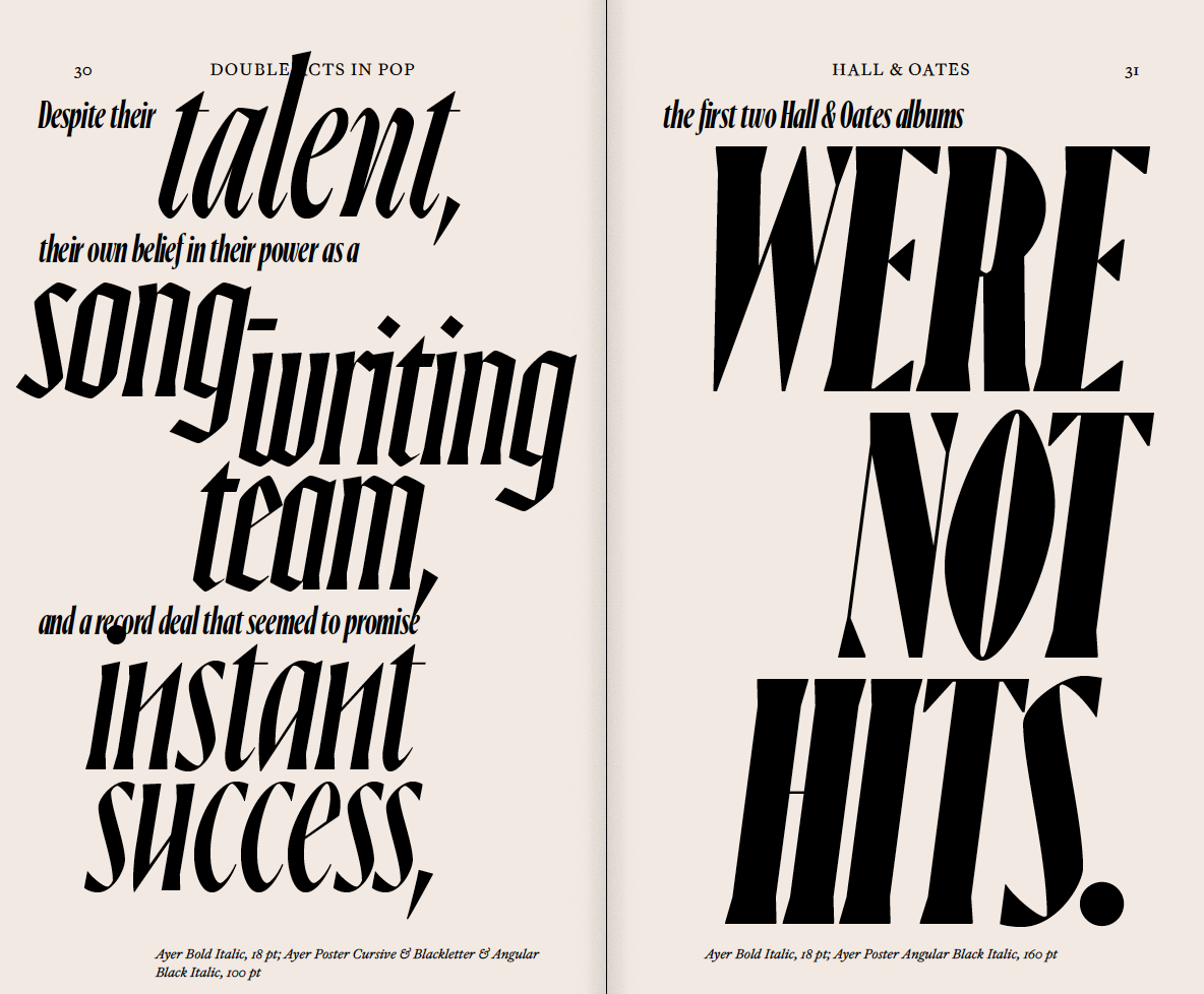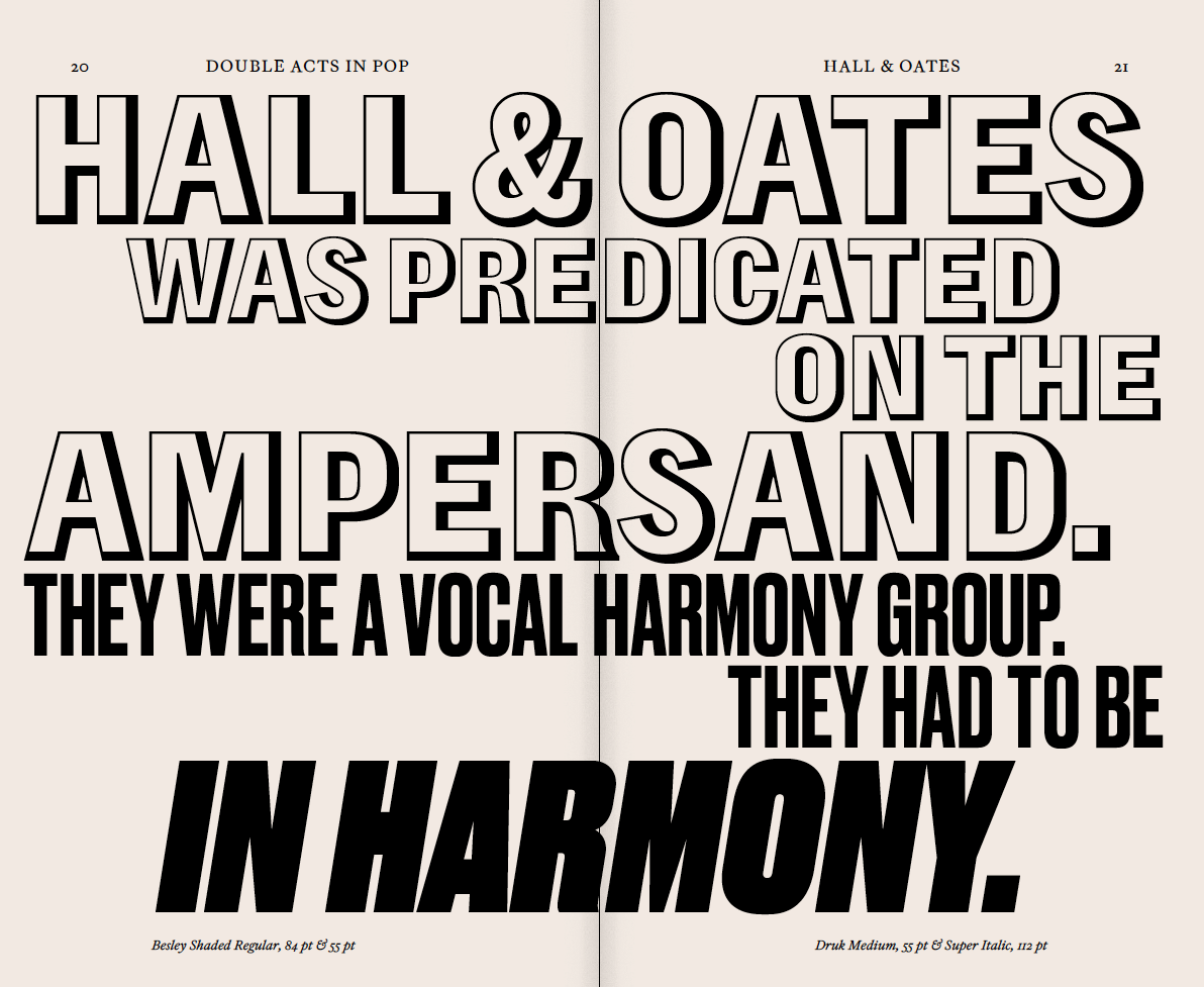 CS: Off the top of our heads, we can’t think of any notable failed collaborative projects between type designers like Axl Rose’s Chinese Democracy or the original version of Smile by the Beach Boys, though client collaborations sometimes don’t go as planned or as hoped. However, we’ve found that what might feel like the wrong solution for one client can later be the right solution for someone else.