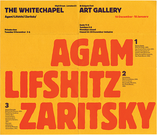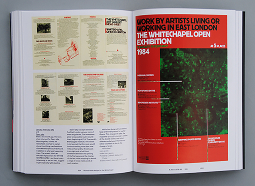 "Richard Hollis designs for the Whitechapel has two main characters: the "British graphic designer Richard Hollis and the Whitechapel Art Gallery in East London" writes Rick Poynor on Christopher Wilson’s monograph which is an exemplary examination of a very British body of graphic design. "The opening two chapters of the book introduce each of them. Then – in chapters that form its centre – the interaction of Hollis and the Whitechapel is presented. The book reproduces much of what was printed for the Whitechapel during the two periods in which Hollis worked for the gallery: 1969–73 and 1978–85. There are extended critical captions on the work reproduced. These two phases of the gallery’s life were in several respects formative, both for the institution itself and for the wider cultural and social life of Britain. Coverage is completed with considerations of the ‘interregnum’ period (1973–78) and the years after 1985, when Peter Saville became the gallery’s designer. Hollis’s Whitechapel years were a time of radical change in the methods of print production: the book documents and explains the technical shifts from specification for hot-metal composition and letterpress printing, through photocomposition, rub-down lettering, paste-up, and on to desktop publishing. Wilson’s discussion is illuminated by his extended interviews with Hollis, with those who worked at the Whitechapel, and with others involved in these events. Quotations from these interviews enliven the narrative. And by looking closely at one period of the designer’s work, Wilson finds the model for Hollis’s whole production. So the book functions partly as a history of one of the essential components of the London art world in that time, and as a survey of the work of ‘one of the finest British graphic designers of the past 50 years’".