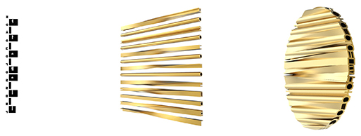 To create the surface Lee digitally laid out letters from the alphabet in two vertical lines, and wrapped the text to form the edges of a disk. Rendering software was used to join the edges diagonally, creating ridges that warp from end to end, dictated by the curved and flat shapes of the character profiles. The alphabet can still be read around the medal rims.