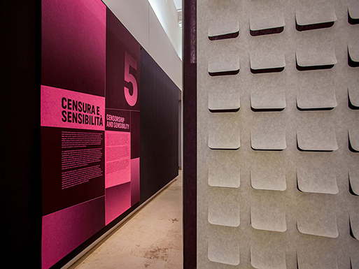 "Pentagram partner Marina Willer has created the visual identity for the exhibition, which takes cues from the storytelling devices used in manga comics. These include panels featuring comic storyboards that are set at different angles and sizes. The panels appear in various colours, including bright red, yellow and pink, to distinguish each of the exhibition’s different sections and themes, and help guide visitors through the space" reports Design Week.