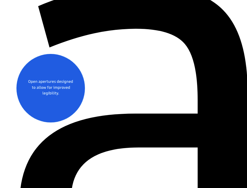 From open letter shapes, enlarged x-height, and optical balancing of individual letterforms, the typeface was designed “clarity in mind.”