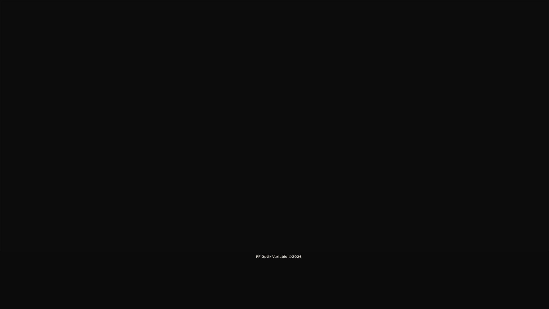 PF Optik is a multi-purpose, multi-script variable typeface with 3 axes such as weight, width and optical size, engineered to perform flawlessly across every environment — digital or analog, large-scale or small-print. Designed with a full range of optical corrections, it adapts seamlessly to the demands of modern typography while preserving clarity and balance at every size.