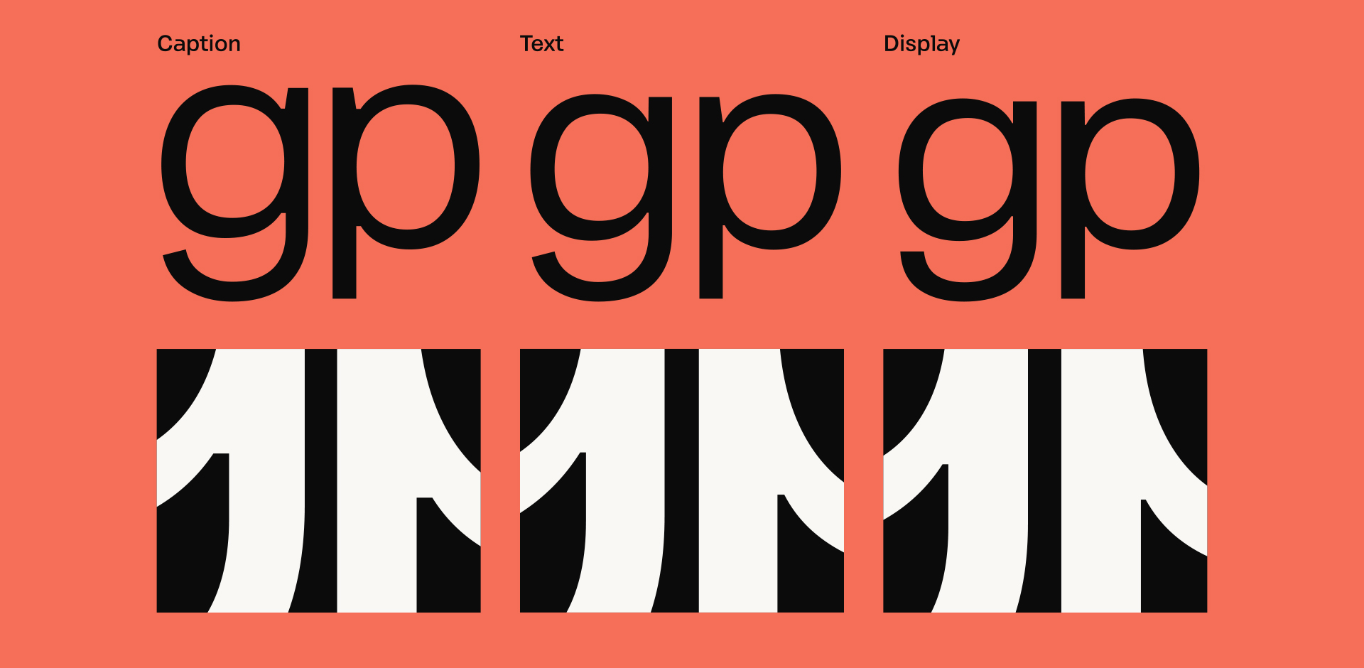 The family is structured into three optical subfamilies — Display, Text, and Caption, all packed under one variable font. Each is carefully tailored to its context: Display for striking presence, Text for comfortable reading, and Caption as a dedicated cut optimized for the tiniest sizes, such as book footnotes, magazine captions, packaging disclaimers, legal text, or mobile UI labels.