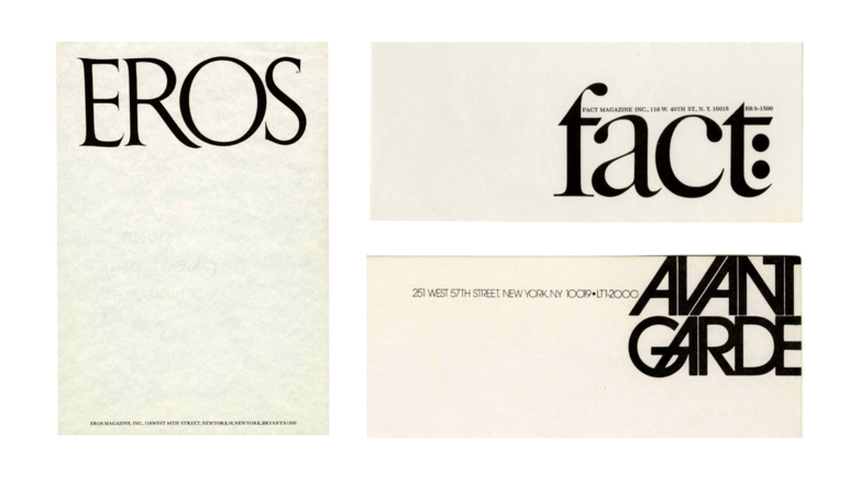 “Amidst the ferment of the 1960s, designer Herb Lubalin and editor Ralph Ginzburg cultivated one of the greatest creative partnerships in history, launching three highly-influential print publications: Eros, Fact, and Avant Garde. In the process, the two luminaries courted controversy, accusations of obscenity and libel, and legal persecution, putting both of their careers — and lives — on the line” notes the studio of the presentation by a man in the know aka Alexander Tochilovsky, the curator of the Lubalin Center which ever since 1985 preserves an “unprecedented resource, Herb Lubalin's vast collection of work.”
